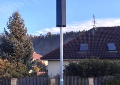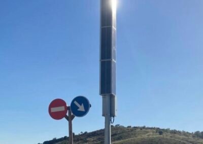 Výška ocelového stožáru je standardně 6m a může být i vyšší. Solární systém Enstore Hexagon H6-CAM je napájen sestavou šesti výkonných vertikálních solárních panelů (celkem 360Wp) po obvodu stožáru. Díky tomuto řešení je napájení solární energií účinné